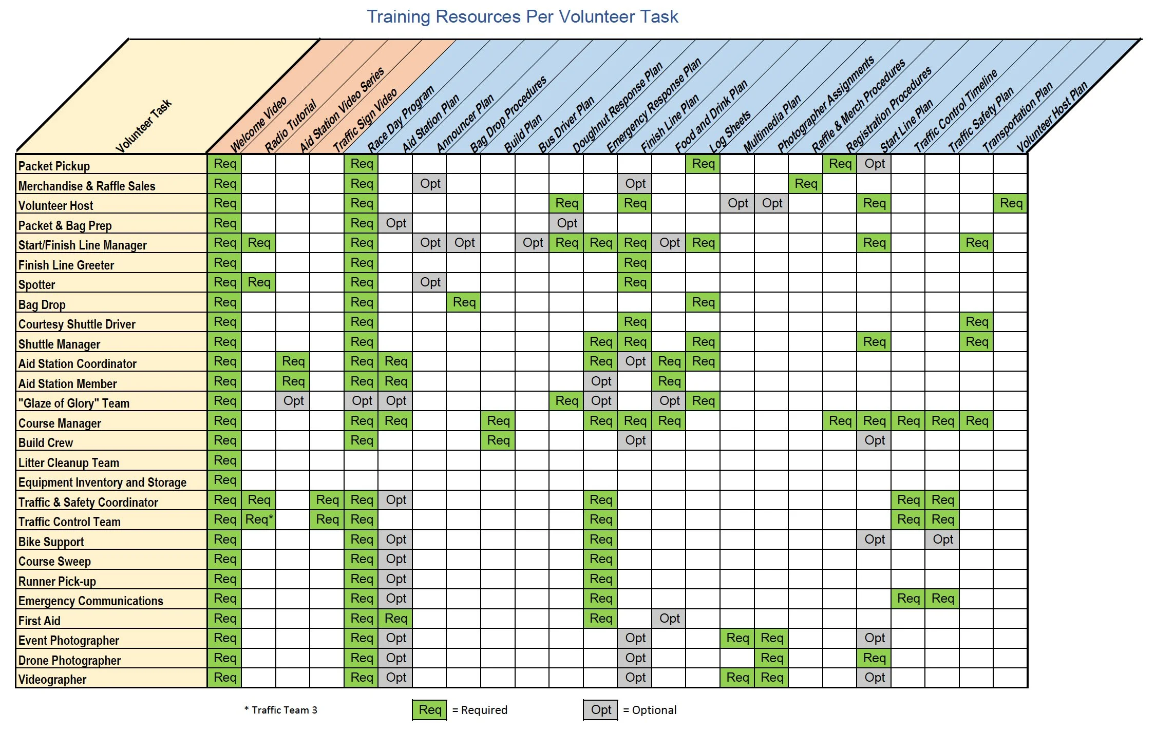 After consulting the chart on the right to see which resources are required or optional for your job, read the specified documents and watch the on-demand video resources (links below).